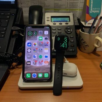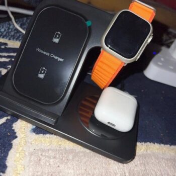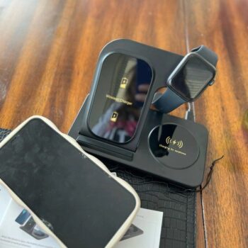 This charging stand is a staple at my work desk. The convenience of charging all three devices in one spot is unmatched. It's a lifesaver, especially during travel, keeping everything organized and accessible