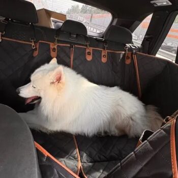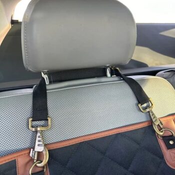 This car dog hammock fits most vehicles with detachable headrests. It also features a unique split design – just undo the zipper in the middle to save space and use this dog hammock on one side of the seat. And when not in use, you can easily fold it up and carry conveniently by the handle. Perfect for travel lovers!