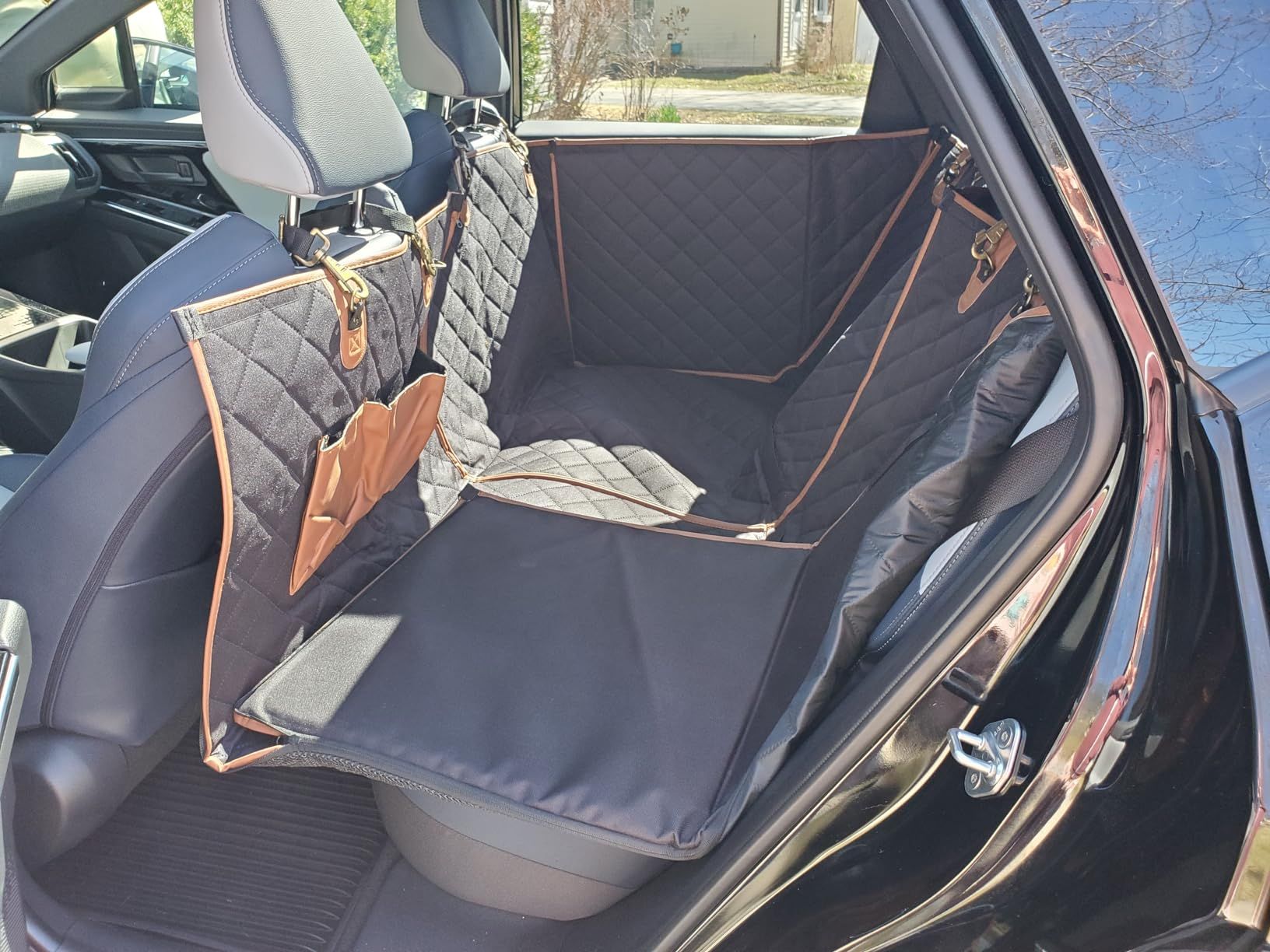 This seat cover features two convenient pockets, providing ample room to store all your pet’s essentials in one organized spot. Whether it’s their favorite toys, treats, leashes, brushes, or travel bowls, these handy pockets ensure everything you need is easily accessible during your trips. It’s a practical solution for keeping your car tidy and ensuring you’re always prepared for your pet’s needs on the go.
