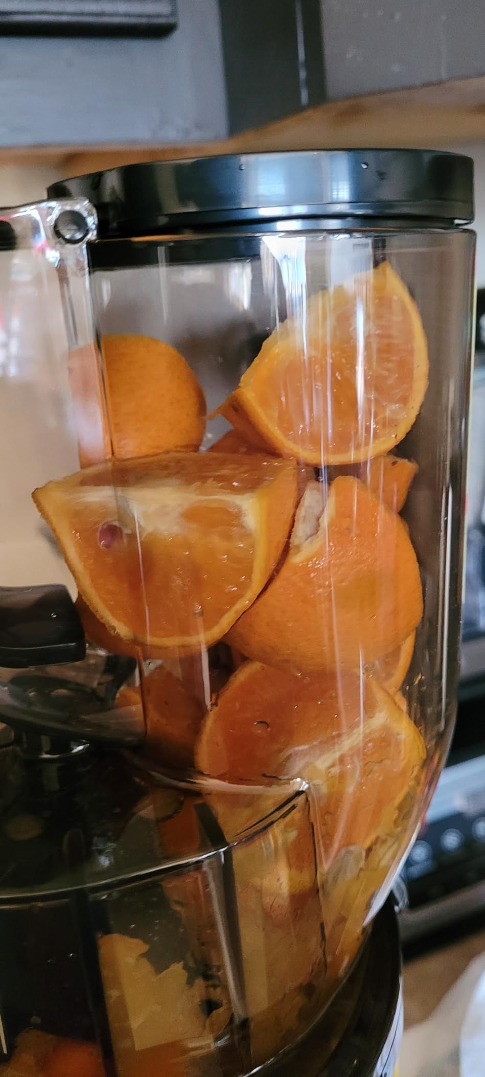 • Wide Feed Chute: 3-inch wide chute fits whole fruits and vegetables, reducing prep time.