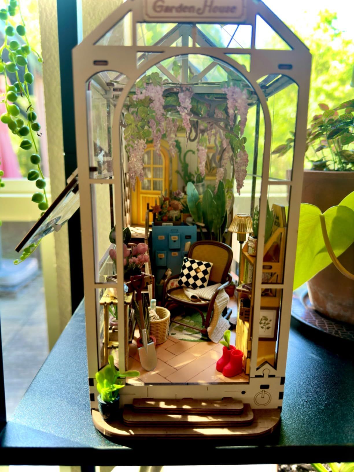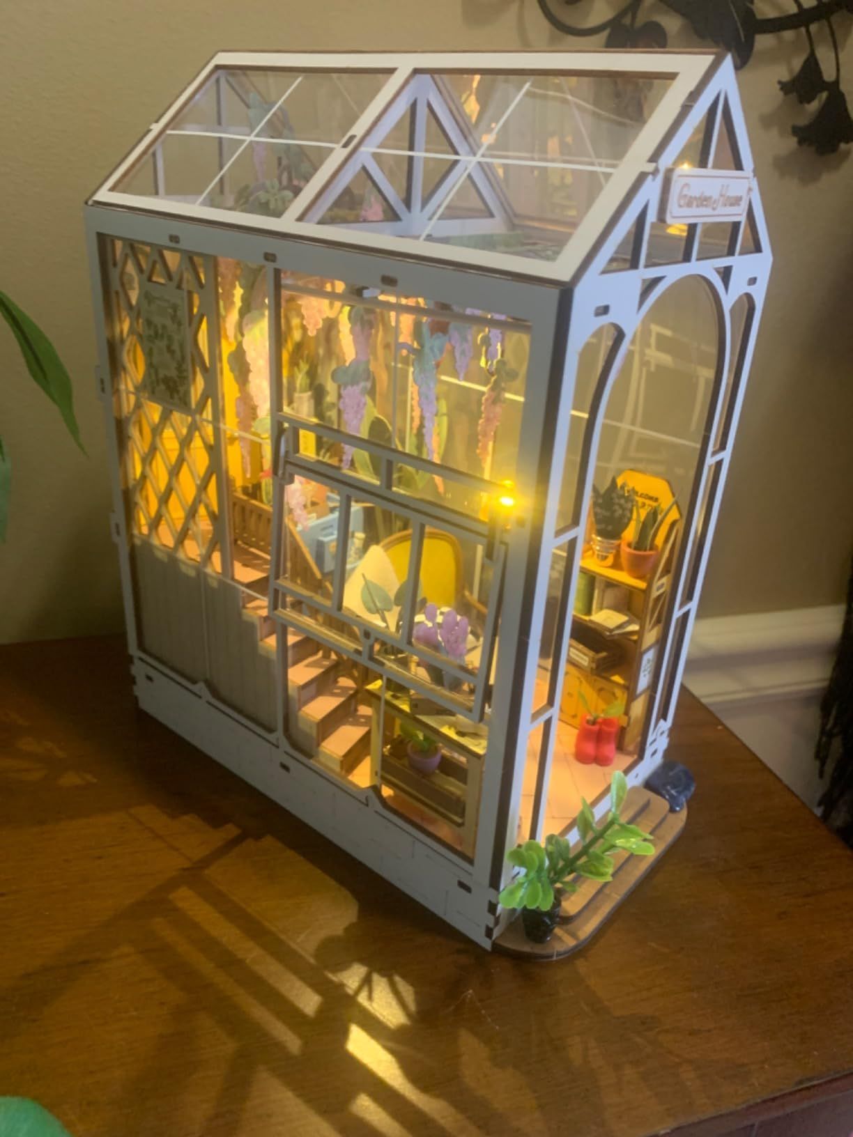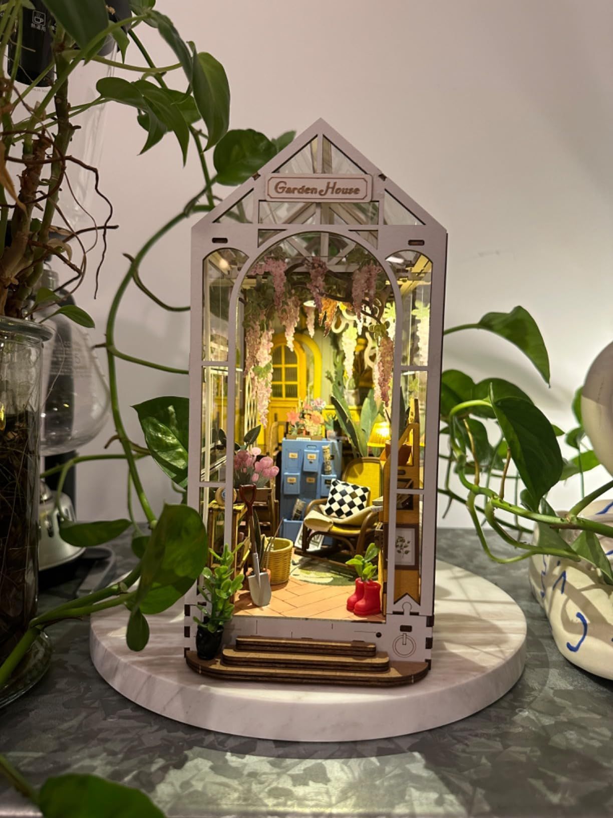 The Garden House Book Nook Kit is more than just a model; it’s a journey into a miniature paradise. Crafted with meticulous detail, each piece is designed to mimic the charm and beauty of a real garden house. The high-quality materials ensure durability and a realistic appearance, making it a perfect addition to any home decor. The inclusion of mini jewels adds an element of surprise and delight, making the finished product truly unique.