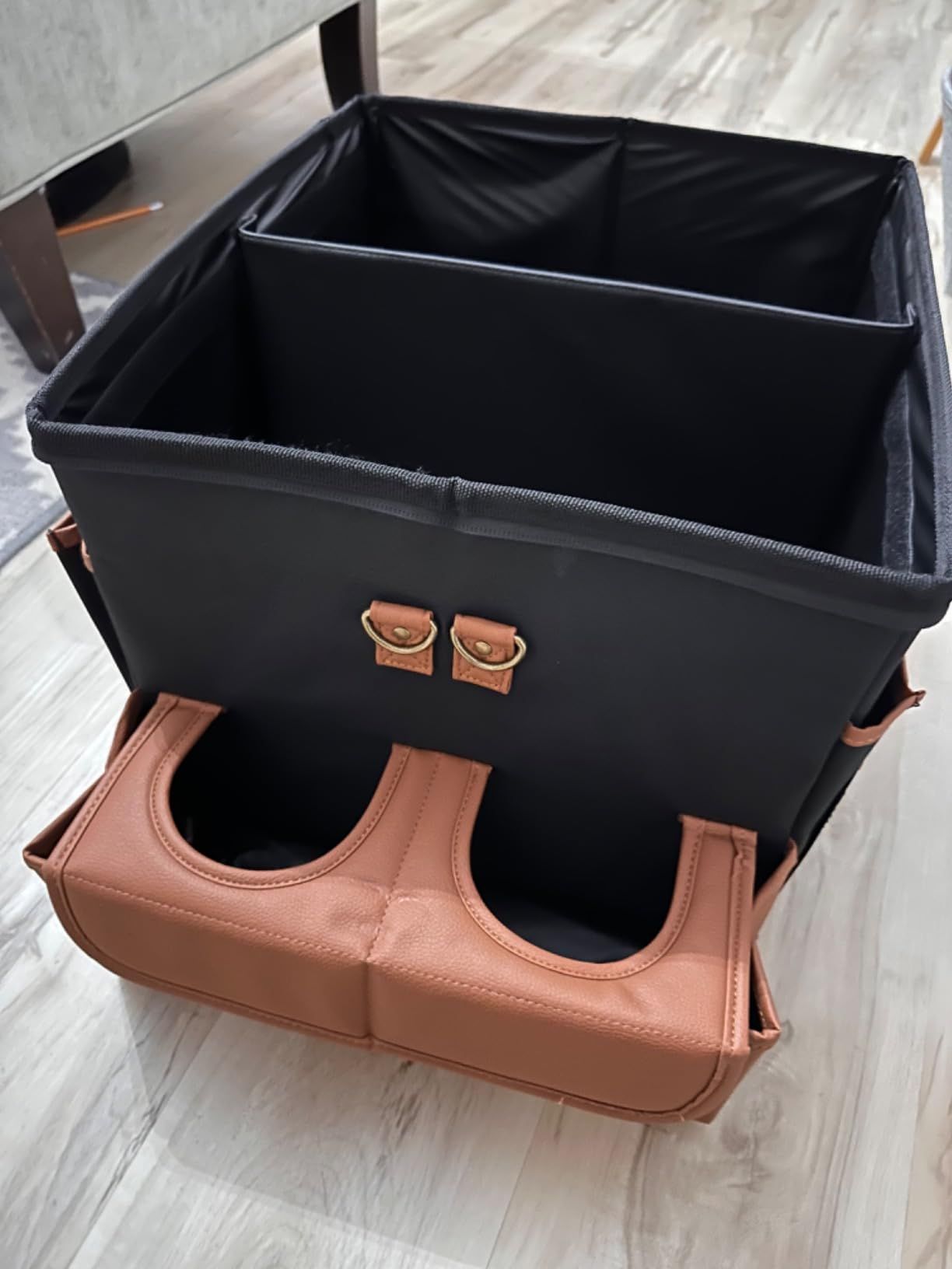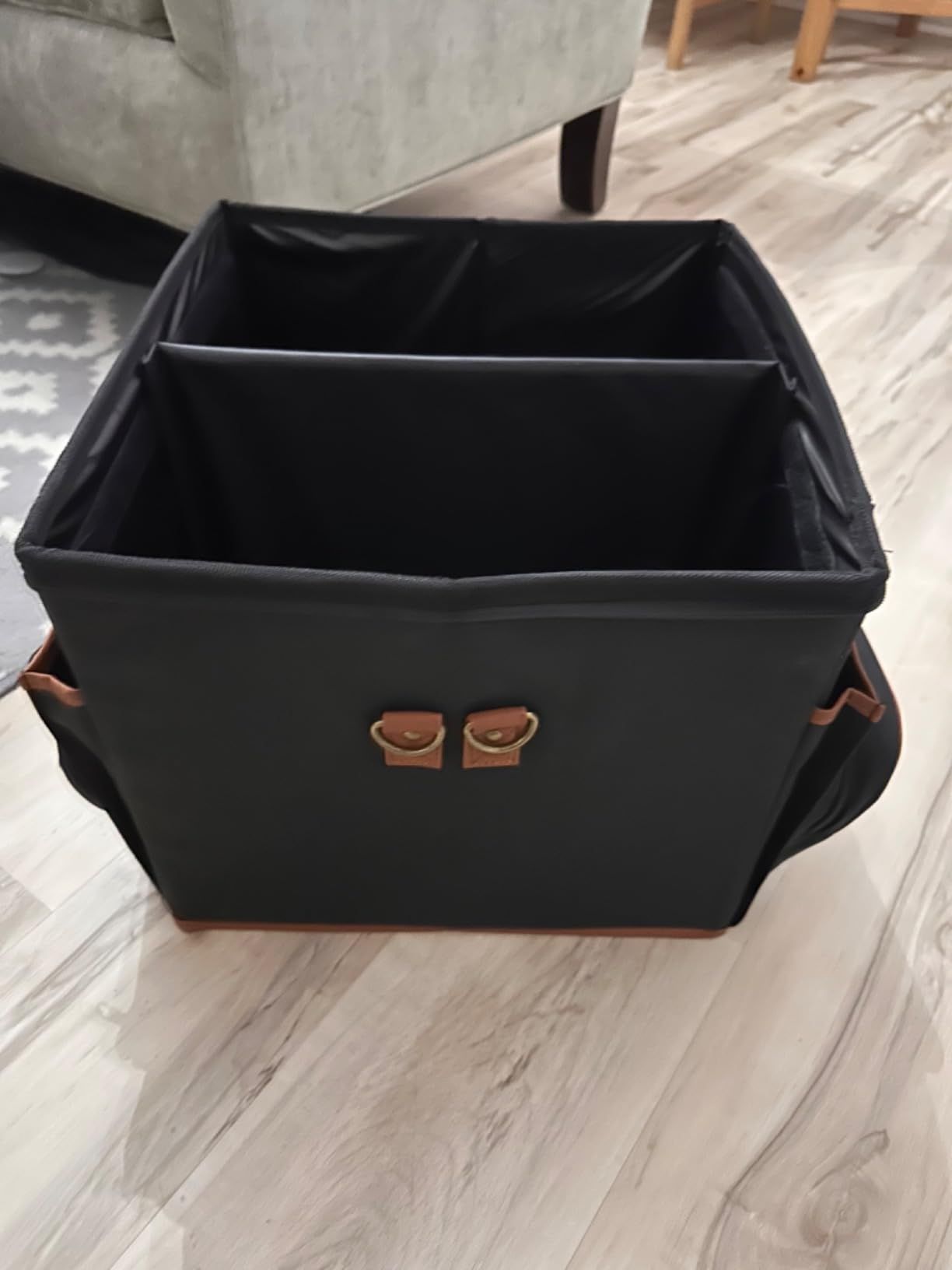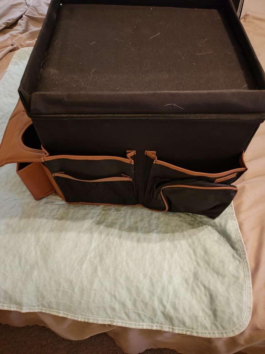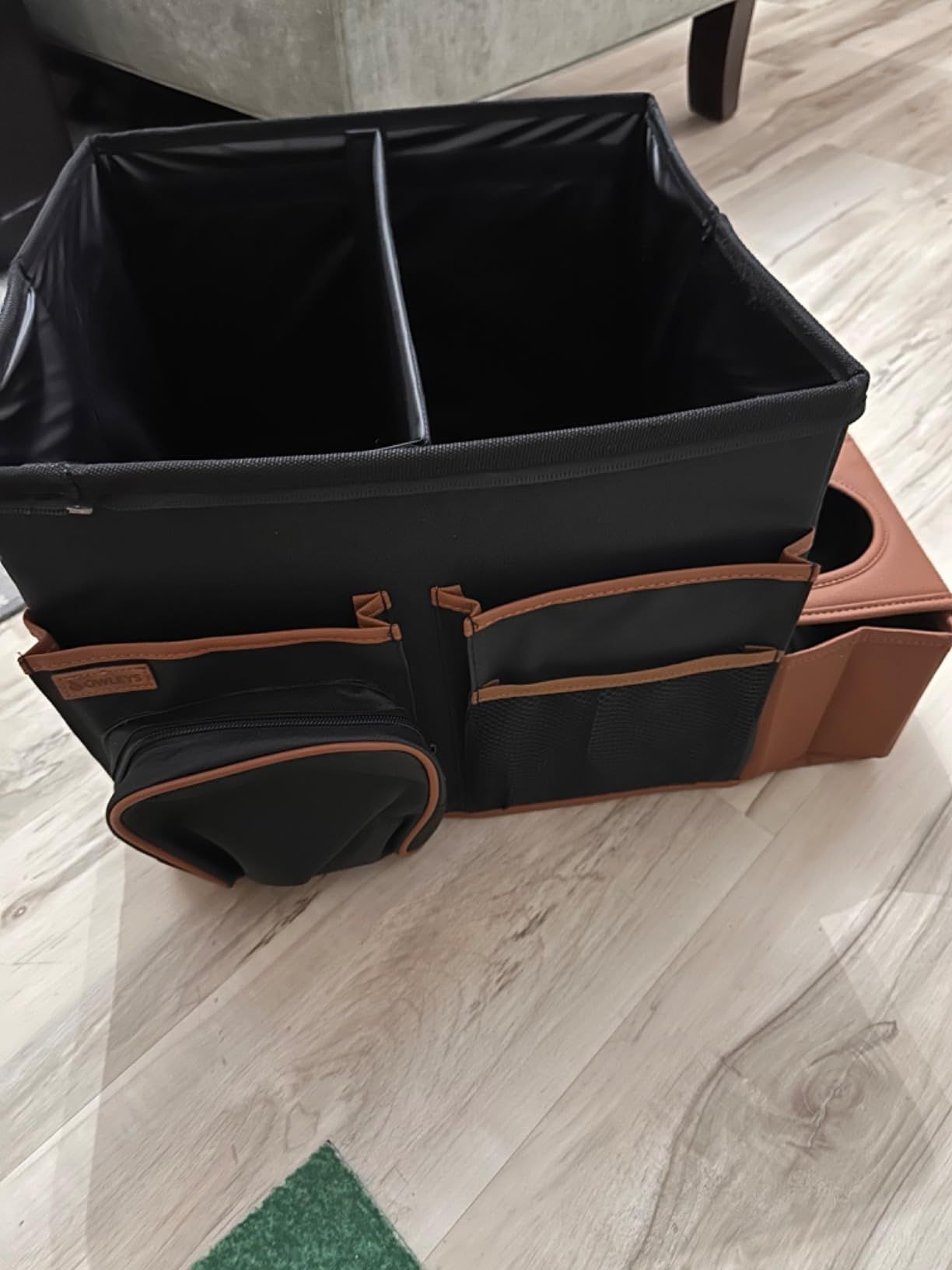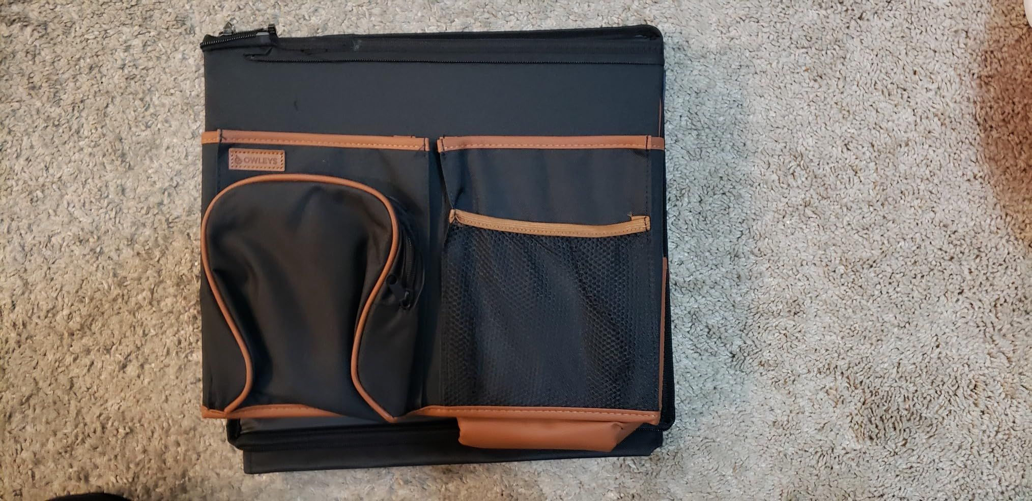 I bought this thing to keep all my car cleaning stuff organized in my trunk. And it really does the job! I was worried that I got one that was too big, but it turns out, I'm glad I got the larger size! All my car cleaning supplies fit nicely in the different compartments. So far, this product is really great! It helps me keep everything organized and tidy.