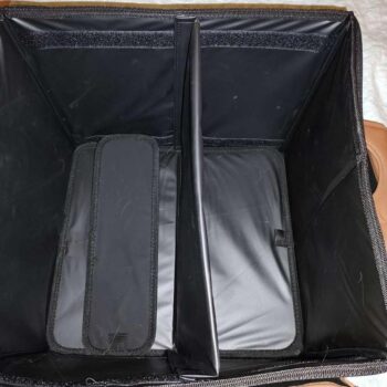 My husband always complains that I bring too much food and supplies for our camping trips. I understand because we have limited space in our Jeep Gladiator with our big dog and two kids. But when you go camping, you need more than the usual stuff. This organizer held everything we needed for our kitchen and safety supplies. It kept everything nicely packed, so we had plenty of space to put our sleeping bags and backpacks on top. My husband really liked it. We could fit everything from food, paper products, and dog food to trash bags, bug repellent, and grill tongs. We loaded it up in the house and carried it to the truck without any stability issues.