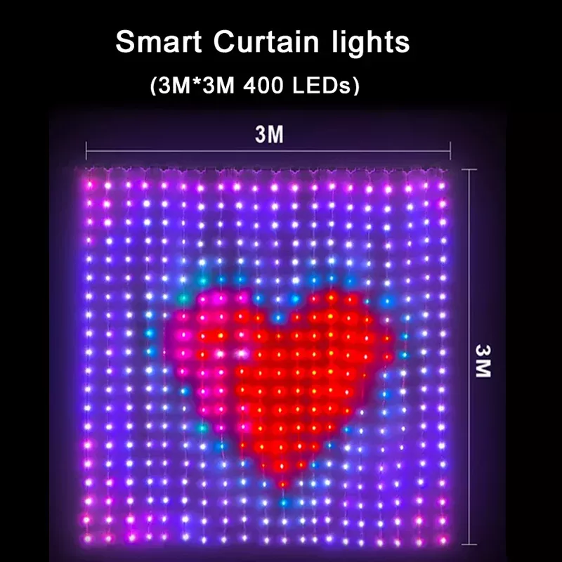 These Smart Curtain Lights come equipped with 400 high-efficiency LEDs, capable of displaying 16 million colors and various patterns. The lights are easily programmable via a user-friendly app, allowing you to write messages, sync with your favorite tunes, and much more. With waterproof certification and a durable design, they are ideal for both indoor and outdoor use.