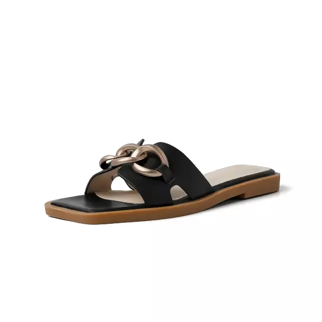 • Unique Design: Featuring a distinctive square toe and elegant metal decoration, these slippers are the epitome of modern style.